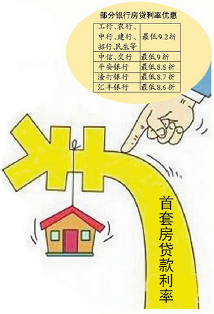 记者了解到,3月初,本地多数银行的首套房贷利率可在基准利率的基础上打9.5折或9.3折,部分银行甚至执行基准利率,极个别银行最低可做到8.8折。
