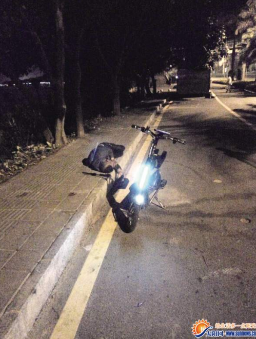 6日晚,在曾厝垵公交站靠海一侧的人行道上,一名男子倒在地上呼呼大睡。晚上7点多,有路人发现了他。“会不会是生病还是怎么了,不然为何倒在那里?”担心出意外,路人赶紧报了警。民警和120赶来现场,找到了昏睡的男子,男子身旁还停了一部租来的电动滑板车。
