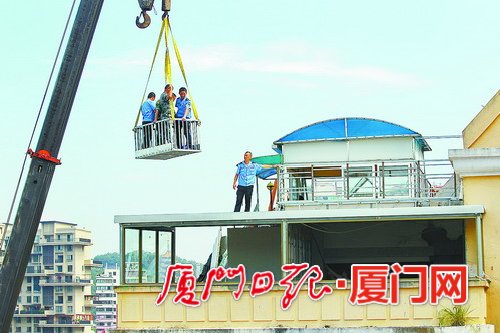 厦门城管乘吊车空降楼顶拆违建 严控老旧小区违建