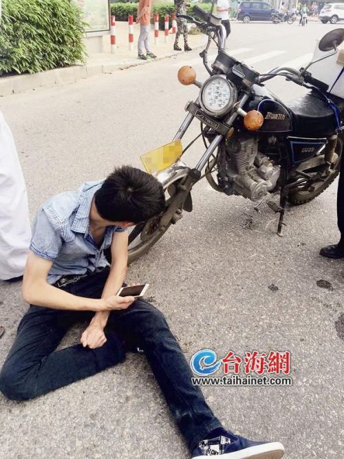 翔安一行人被摩托车撞 因边走路边听歌没听见喇叭声