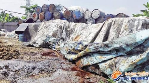 占地上千平米“黑企业”偷排毒气 废机油流满地