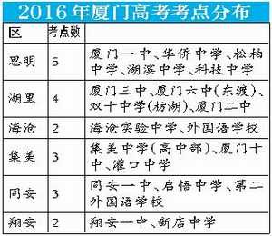 厦门网-厦门日报讯 (记者 黄璜 通讯员 林冯)2016年高考将于明日开始,我市共设19个高考考点。考试期间,我市警方将在考点周边实施交通管制,并派出警力维持交通秩序。