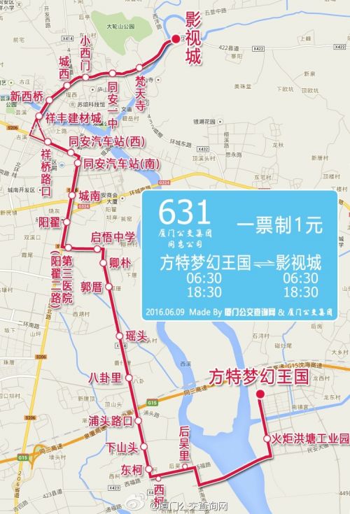 线路由汀溪客运站始发,行至同明南路集兴路口,改为右转集兴路,经集兴路、后宅路、赤坪路接原线路往厦门实验中学西门。返程亦同。