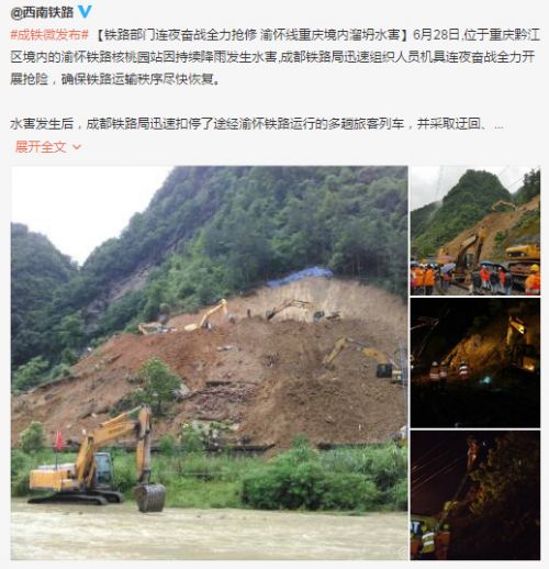 因重庆持续降雨发生水害 29日厦门至重庆北K336次列车停运