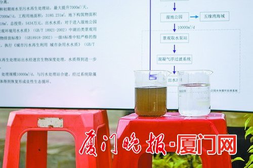 厦门网-厦门晚报讯(文/记者 谢雨真 通讯员 黄凯帝 图/黄凯帝)如果告诉您,五缘湾湿地公园用的景观补水,其实是处理过的污水,您会不会很惊讶?昨天,记者从市环保局了解到,五缘湾湿地公园水环境治理工程项目已完工,片区内的污水可统一收集到泵站,经过处理后,劣五类水质可变为冲厕、绿化用的再生水。据悉,这样的污水就地处理模式将在全市推广。