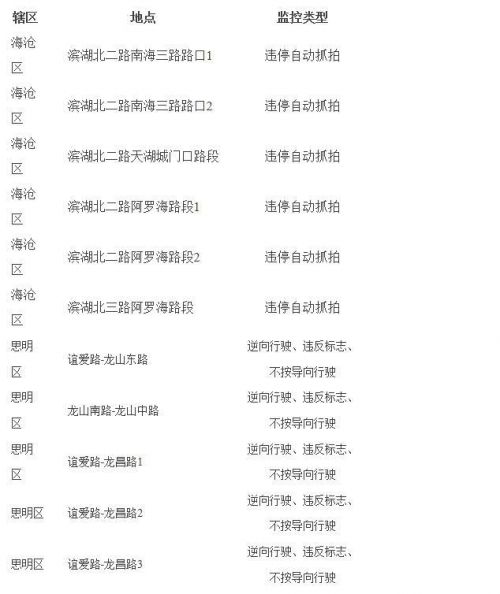 记者11日从厦门交警网了解到,根据公安部第105号令“道路交通安全违法行为处理程序规定”第十六条第二款规定,厦门交警网最新公示了我市新增的十一处固定式交通技术监控设备设置地点。这十一处地点分别是思明区五处、海沧区六处。监控类型包括违停自动抓拍、逆向行驶、违反标志、不按导向行驶违法行为自动抓拍。具体如下: