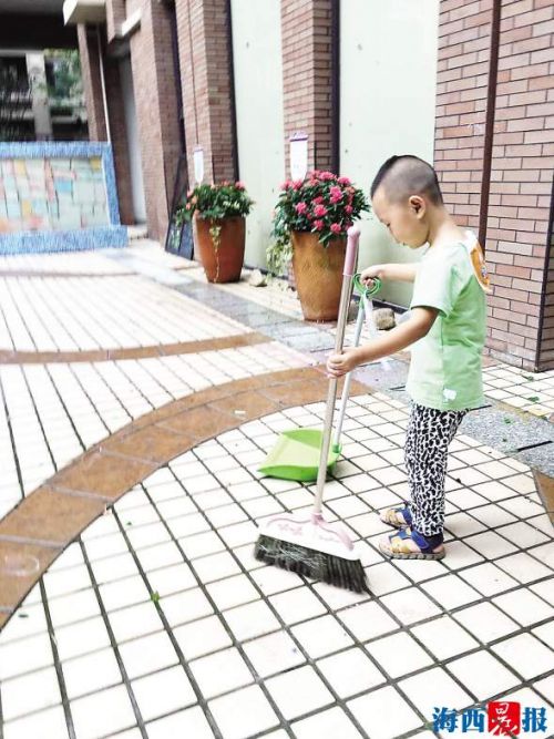 16日一大早,北师大海沧附属学校的老师庄运武就来到学校,开始清理被台风肆虐过的校园。