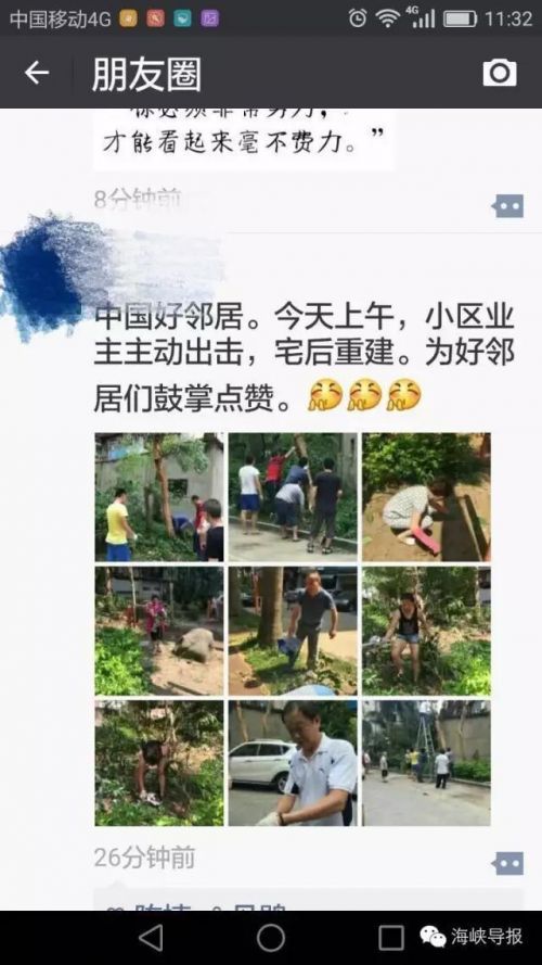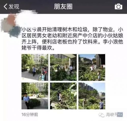 据海峡导报官方微信报道,台风莫兰蒂刚走,厦门人的朋友圈画风突变,一下子从中秋节变成了劳动节。为什么?今年14号台风“莫兰蒂”给厦门市政道路行道树等市政设施造成严重损坏,厦门市正调集各方力量全力加强对市区主要道路进行清障工作,很多市民也加入到清理树木的行动中。