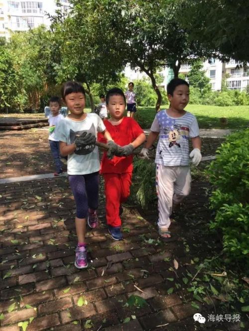 小朋友们也不闲着,捡起遍地的残枝。