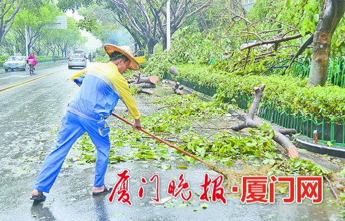 最近3天,同安区环卫处和同安区园林管理中心工作人员都忙着清运残枝落叶。据同安区环卫处主任张宏安说,大量倒伏的大树和残枝落叶收集后,都统一运往原闽南果蔬批发市场的空地存放。