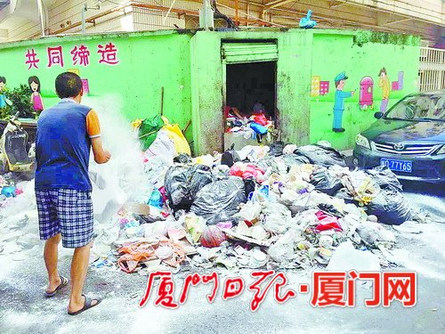 湖里卫计局工作人员正在对垃圾堆进行消杀工作。