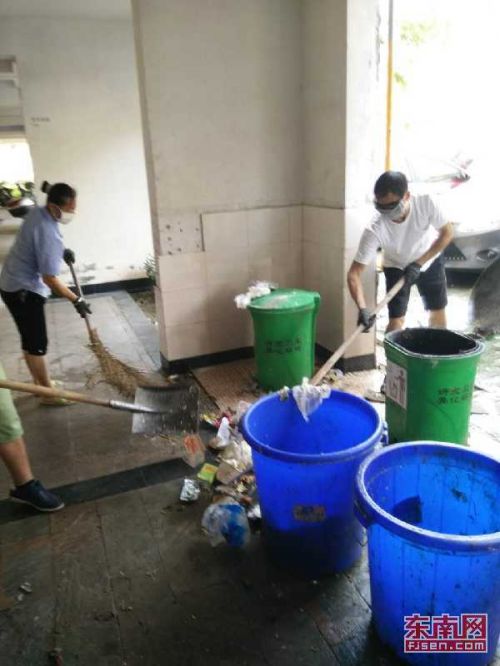 15日上午,台风刚过境,古龙明珠小区就出现多名“业主志愿者”在义务打扫小区。大家相互交流得知,原来他们有着共同的“属性”,都是从部队专业的军人。凭借军人的特质,他们迅速地形成了一支自救自建小分队。