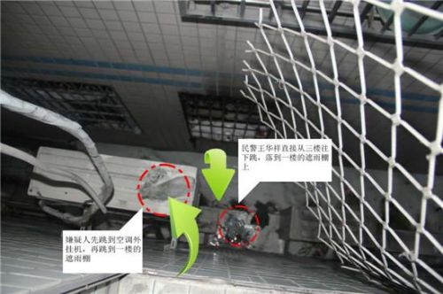 “砰”的一声,王华祥落在一楼的遮雨棚上,与黄某华共处在一米宽的遮雨棚上。黄某华见无处可逃,便跳到隔壁楼的超市的遮雨棚上,不料直接跌落在一楼,被守候在下面的伏击队员摁倒在地。