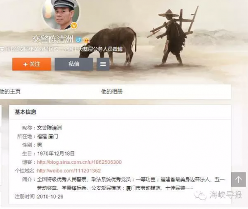 拥有78万粉丝的陈清洲是厦门市公安局集美分局民警、全国特技优秀人民警察,长年在微博上设有#清洲帮寻人#栏目,帮助寻找失踪的儿童,受到了网友们的欢迎。