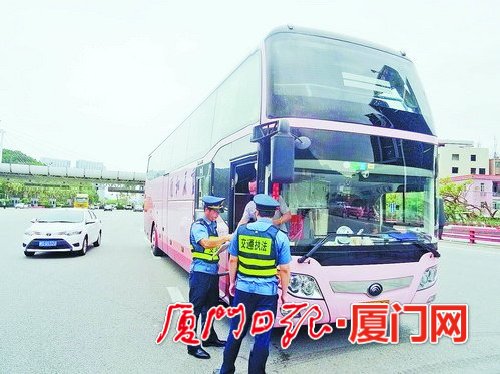 厦门拦获一辆重庆牌大客车 车上26名乘客全没票