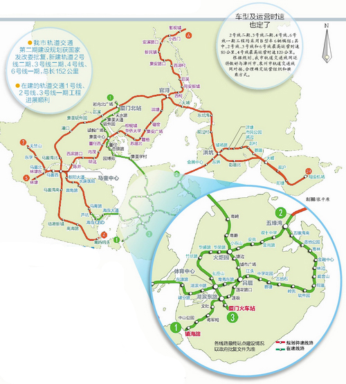 为做好城市轨道交通与铁路厦门站的衔接,同意将第一期建设规划中的3号线一期工程东端局部改线,调整后线路自厦门火车站至五缘湾站,线路长15.3公里,设站13座。规划建设期为2016年-2020年。