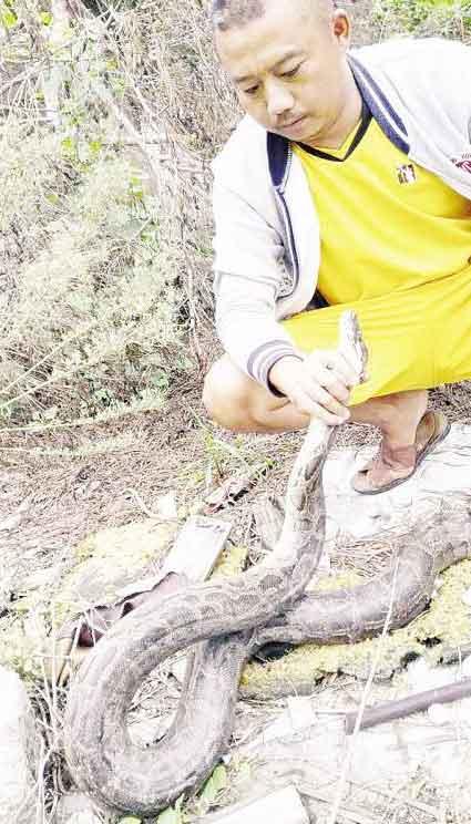 厦门秋季蛇类活动频繁 工人洞中挖出32斤大蟒蛇