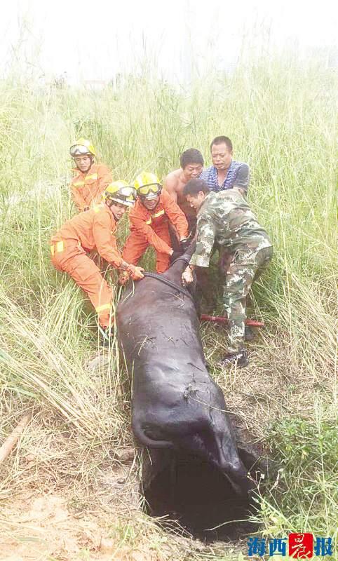 厦门失踪黄牛被困枯井 消防员巧用浮力将其救出