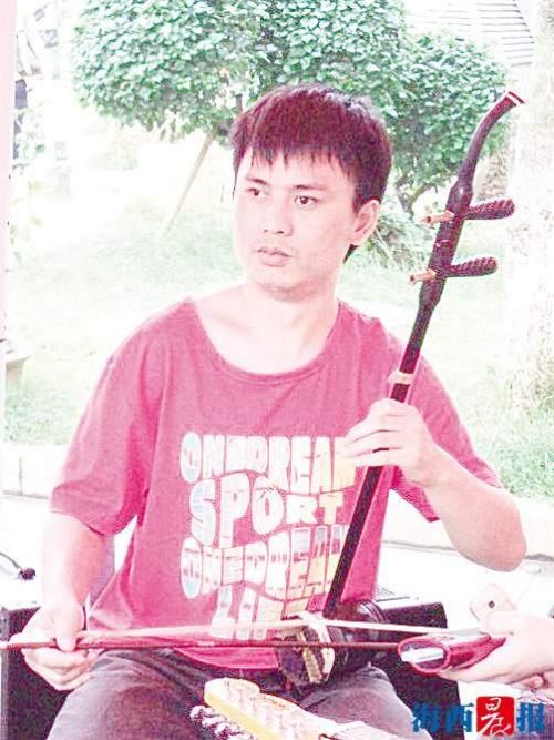 大山自学二胡,丰富自己的人生。