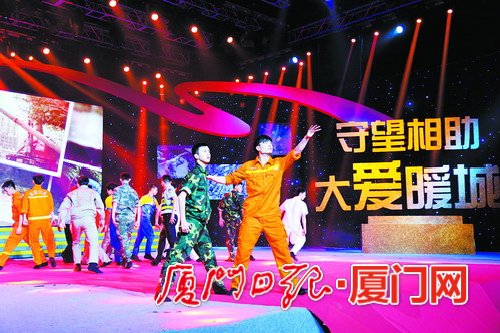 昨晚的特别节目通过主题文艺演出等形式,彰显在抗台救灾战斗中展现的厦门精神。(黄劲摄)