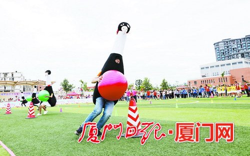赛场上,运动员们全力以赴,奋勇拼搏。场外,啦啦队员群情激昂,呐喊助威。趣味竞技项目“鸵鸟赛跑”、“旱地龙舟”等考验着团体协作和速度。在“鸵鸟赛跑”中,参赛队员分工合作,队员每到终点,就有两个队友协助下一个运动员套好鸵鸟服装;在“旱地龙舟”中,四名队员口中喊着口号,齐步迈进,向终点进发。在最后的比赛中,湖里区总工会把工会日常工作以10条(每条8个字)简短口号融入项目中,使大家对工会“娘家人”的工作了解更深刻。