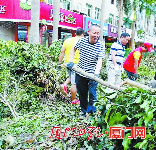 台风“莫兰蒂”登陆前,厦门市粮食局、厦门市军粮供应站相关负责人连夜召开紧急会议,部署抗御台风重建家园、保障我市粮食供应的工作;台风来袭后,粮食人第一时间赶到粮库救灾,很快恢复正常生产秩序,确保库点及时接收储备粮入库。我市粮食正常供应,价格稳定,“米袋子”让百姓无忧。图为市粮食局局长卢晓东(右三)带队参与灾后恢复重建工作。