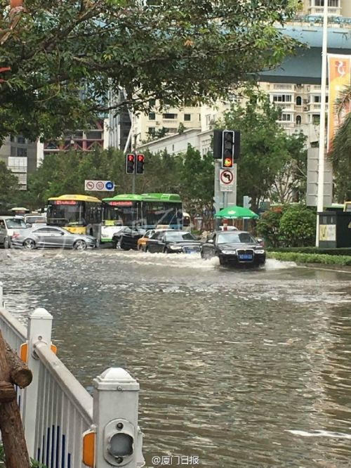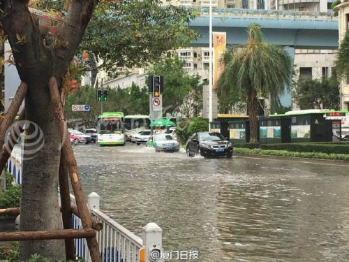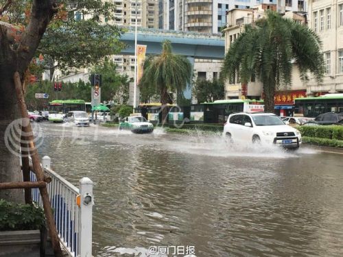 倒灌海水将厦门鹭江道厦禾路口淹没 积水挺深