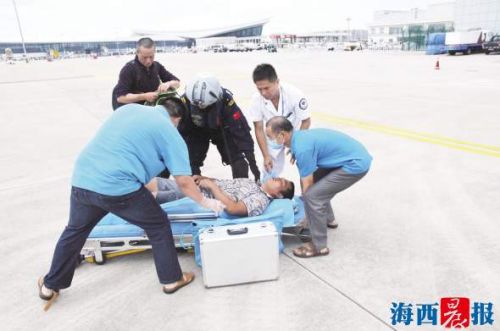 直升机安全降落后,患病渔民被送往医院接受治疗。