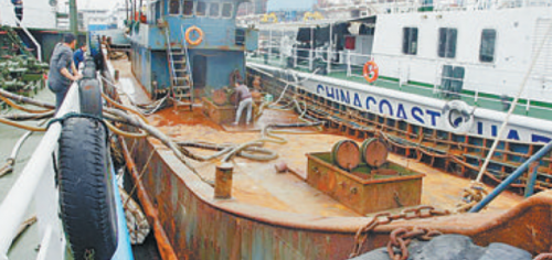 “我们的舰艇吨位有七八十吨,而母船有上千吨,子船也有四五百吨。”林俊杰说,子船上的船员慌张得很,索性甩开油管,强行开船逃跑。追捕中,舰艇“船小胆大”,加速用船体撞击子船,硬生生把子船的后甲板撞飞,铁块等零部件四散。“元气大伤”的子船慌不择路,不多时就被外围的海警船控制。