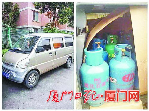 18日上午,在前埔不夜城附近某小区围墙边,一辆五菱微型面包车,引起了小区居民的关注。因为透过玻璃窗可以看到,车内摆着为数不少的燃气钢瓶,而且为掩人耳目,燃气钢瓶的四周还用厚纸皮盖着。