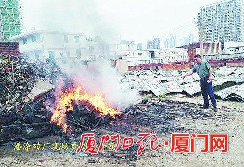国庆假期,市环境监察支队执法人员坚守岗位,查处潘涂砖厂非法焚烧沥青瓦。