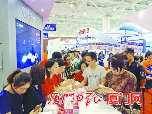 在人居企业项目馆,2016厦门秋季房产展示交易会(以下称“秋交会”)吸引了众多市民的关注。据了解,本次共有建发、国贸、特房、住宅、海投、路桥、联发、开元国投、杏林建设、招商蛇口、龙湖、保利、禹洲、福信大唐、南中等15家品牌企业参展,集中展示了当前市场颇为关注的40余个房地产项目。此外,本次秋交会还吸引了8家泉州地区的热点楼盘组团参展。