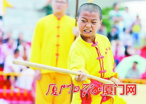 其实,正是在一场场“武术进校园”等活动的拉动下,翔安越来越多的孩子们与武术文化结下了不解之缘。在昨天剑拔弩张的赛场上穿插进行的“答嘴鼓”表演,小演员们也把“自古英雄出少年”的理念诠释得淋漓尽致。