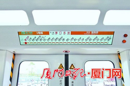 每节车厢都配有电视和电子显示屏,可以显示出站点信息,车门上方有电子线路图,全线24个站点的名称都在上面。车厢内的广播系统也会播报到站提示信息,不少网友建议,除了普通话播报外,还要增加闽南话播报。