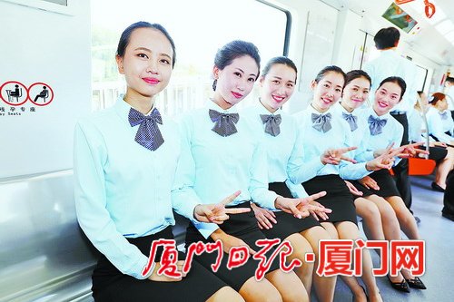 硬件设施很棒,软件服务也不落下。昨日上午,连同地铁首列车辆一同亮相的,还有厦门轨道交通集团运营分公司的员工。他们的颜值都很高,身穿统一的蓝色制服,青春洋溢,笑容甜美,有的是驾驶员,有的是修车员,有的是站务员。他们集体登台宣誓,承诺将为市民乘客提供安全、舒适、一流的服务。