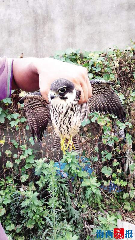 老人散步捡到灰背隼 精心照顾其半个月后放生