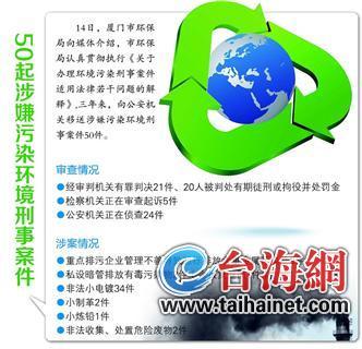 14日,厦门市环保局向媒体通报了“两高”司法解释发布以来厦门市环保局移送污染环境刑事案件的情况。近三年来,市环保局先后向公安机关移送涉嫌污染环境刑事案件50起。