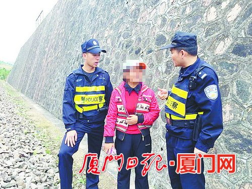 厦门网-厦门日报讯(文/图通讯员林艺静 张丽芳记者曾嫣艳)“快下道,火车要来了,危险……”民警一边跑一边喊,可红衣女子调头向火车开来的方向加速行走。民警顿觉不妙,将这名打算轻生的女子拽趴在路肩外的石碴上。
