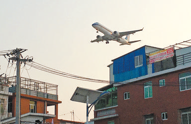 昨日下午4时30分,驻足在高殿社区海峡大舞台前,不时传来飞机的轰鸣声,大飞机从头顶低空掠过。爬上制高点,这里以自建民房居多,它们的“第五立面”,因为高度、颜色、材质、面积等不统一,显得十分凌乱。有贴瓷砖的新楼,也有瓦片残留的闽南老建筑;有铁皮搭盖的屋顶,也有红砖不断往上叠的屋顶;有绿草茵茵,也有来不及清理的枯枝败叶。