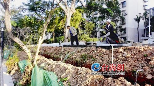 昨日,在筼筜湖靠近槟榔路的一侧,导报记者看到,工人正在抓紧施工。在湖边的绿化带上,部分路段已经铺设了新的植物喷灌系统。