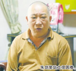(记者 谢静)病魔突然到访,几乎摧毁了这个家。中风使朱剑荣落下右半身行动不便的后遗症,糖尿病让他的左脚扭曲变形;一年后,妻子被查出慢性骨髓白血病,住院七次,花光积蓄背上债,捡回一条命。夫妻俩因为身体原因,找不到工作,一家三口倚靠的是每月1900元的低保金。