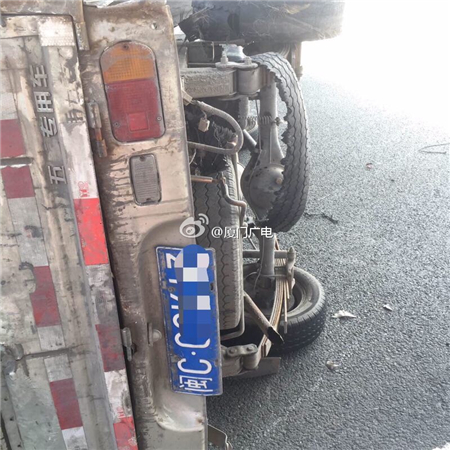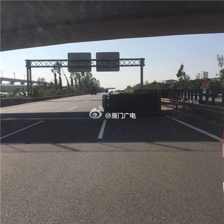 沈海高速漳州往厦门方向一货车后轮出问题失控侧翻