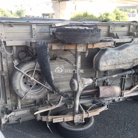 今天(26日)中午12时许,沈海高速漳州往厦门方向杏林出口不远处,一辆泉州牌照的微型小货车车身突然发生强烈晃动,发生侧翻,幸好当时过路的车辆并不多,没有引发其他交通事故。事故发生后,120急救人员赶到现场,经检查发现,司机陈先生只是身上多处擦伤,人并无大碍。陈先生说,事发时车上载了一箱纸皮要往集美方向。事发后,他自行逃离车辆,随后设置了警示标志。对车辆进行了检查后他初步判断是车辆的右后轮突然出现问题导致翻车,目前,高速交警还在对事故做进一步处理。