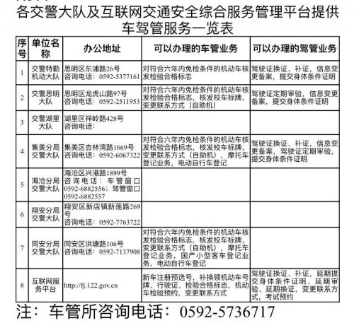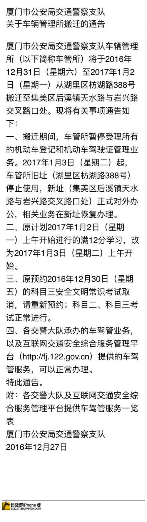 厦门车管所将搬迁至后溪新址于1月3日起正式对外办公