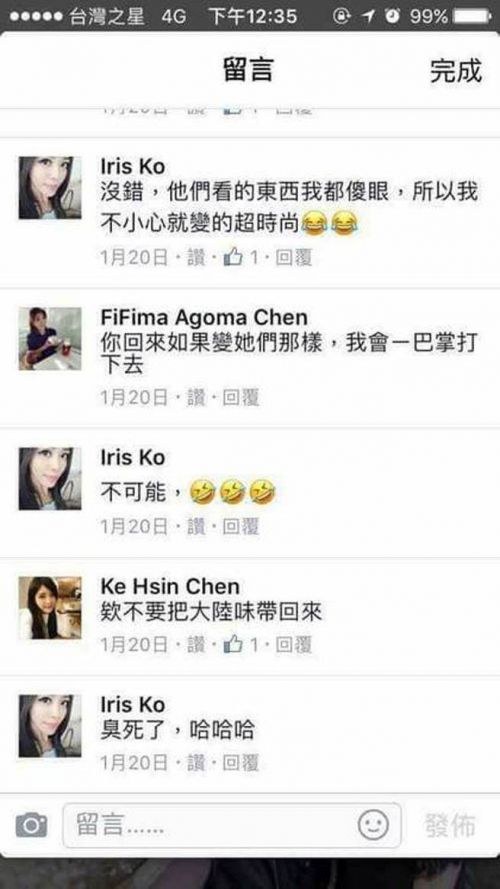 赚大陆钱却骂大陆人 台湾女子遭网友举报被辞退。(图片来源:台湾《中时电子报》)
