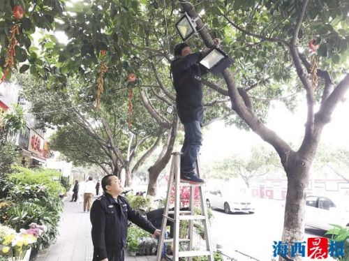 厦门部分行道树松了绑 城管执法人员拆下灯具等
