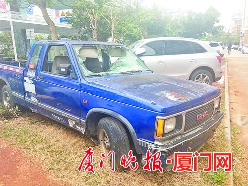 其中一个车位上,有一辆皮卡车,前挡风玻璃已碎裂成蜘蛛网状,侧挡风玻璃不见踪影,驾驶室内散落着一些停车票,车后斗装了不少砖头、塑料瓶等垃圾。另外还有一辆挂泉州牌照的车,轮胎已经瘪了,车身也锈迹斑斑,但是全身仍然用塑料膜包裹着。