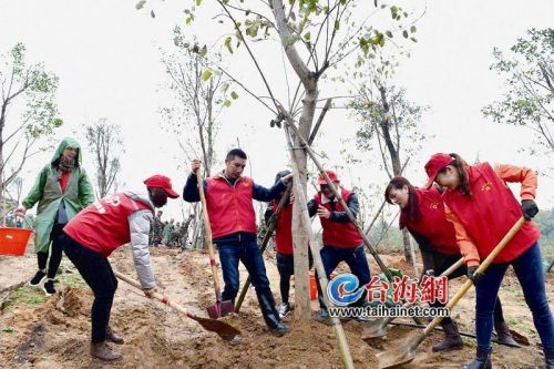 阳春3月春光好,植树添绿正当时。3月16日上午,翔安区党政机关干部、驻翔部队官兵、92580志愿者联盟和新店镇、村干部群众冒着小雨,在新店镇后山岩公园参加义务植树劳动,为翔安增添新绿。