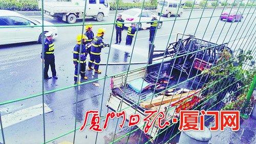 厦门惊险一幕!小货车起火不逃命司机却忙着抢货物