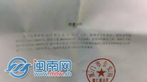今日上午,闽南网记者从鹭江派出所获悉,目前警方对此已经立案,刑侦部门介入调查,案件正进一步调查中。